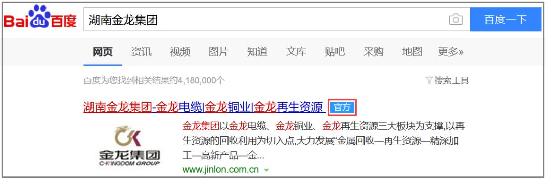 提升已合作品牌词的点击率,通过百度专属“官方”标识,辅助网民快速识别官方网站,提升网站点击率,正向促进网站权重提升;